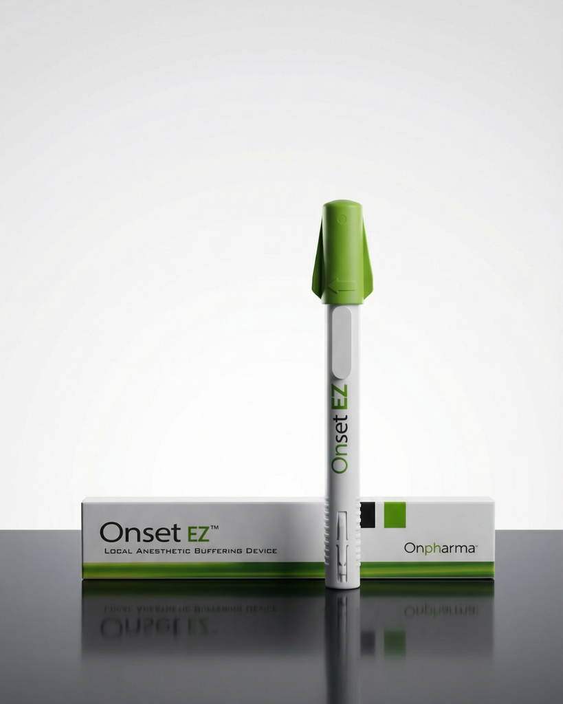 Each Onset EZ Pen is designed to deliver 30 precise buffering doses. It is a fully disposable, all-in-one device that eliminates the need for extra packaging or sharps waste, making it highly efficient for high-volume practices.